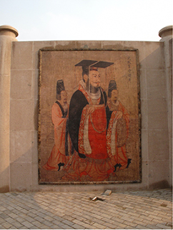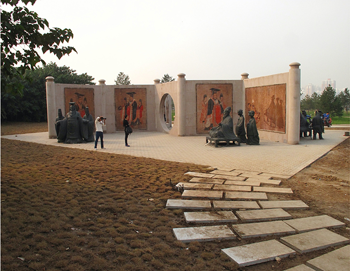 为大明宫遗址公园所作一大型作品,采用历代帝王图为基础元素,将部分人物立体化,就像从画中走出来的样子。墙面的画是专门买的高质量照片文件,在广东蒙娜丽莎陶瓷厂家烧制而成。