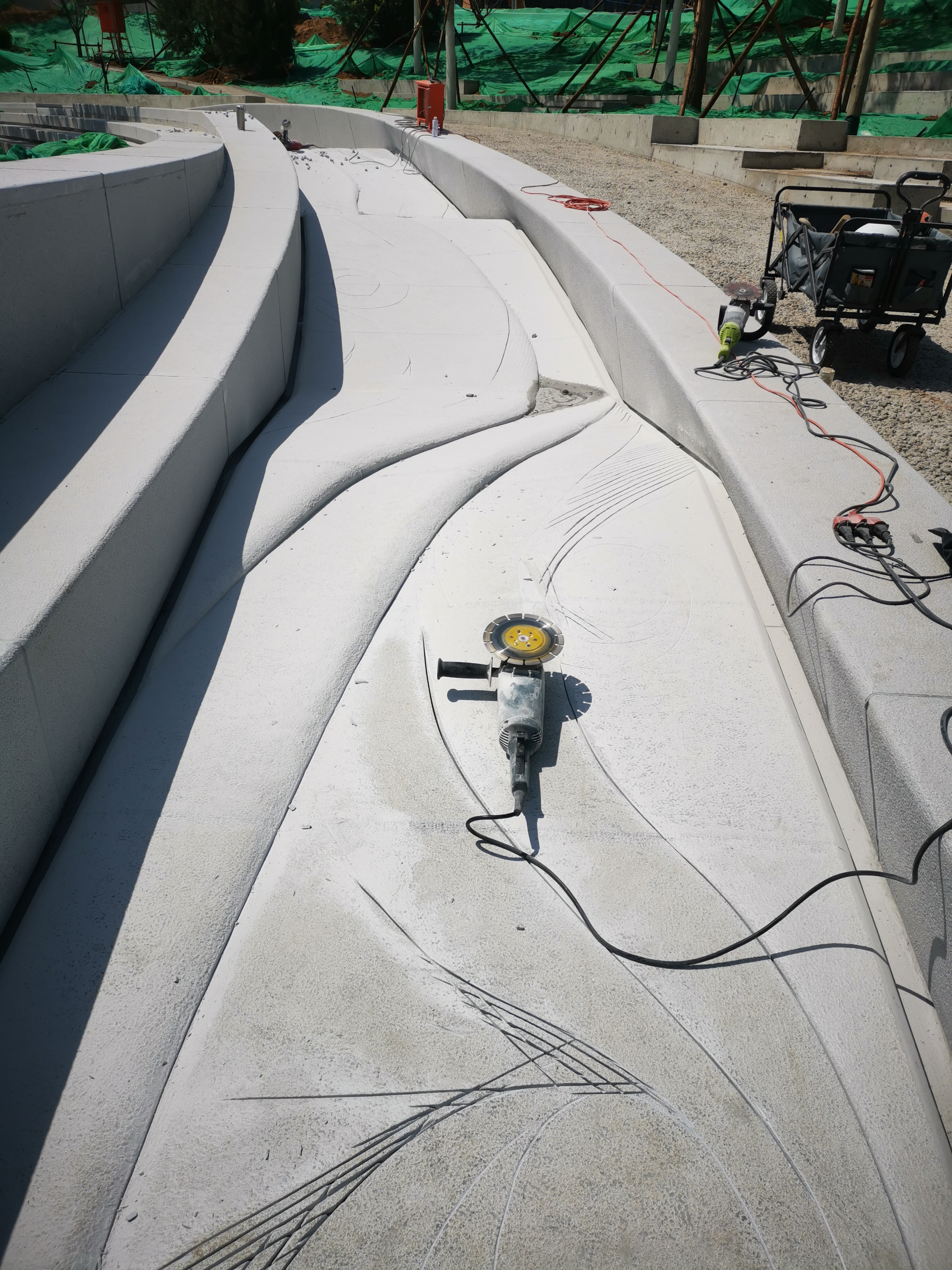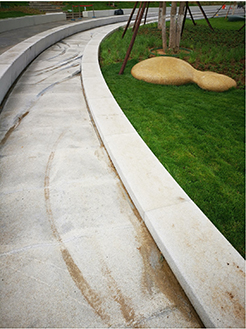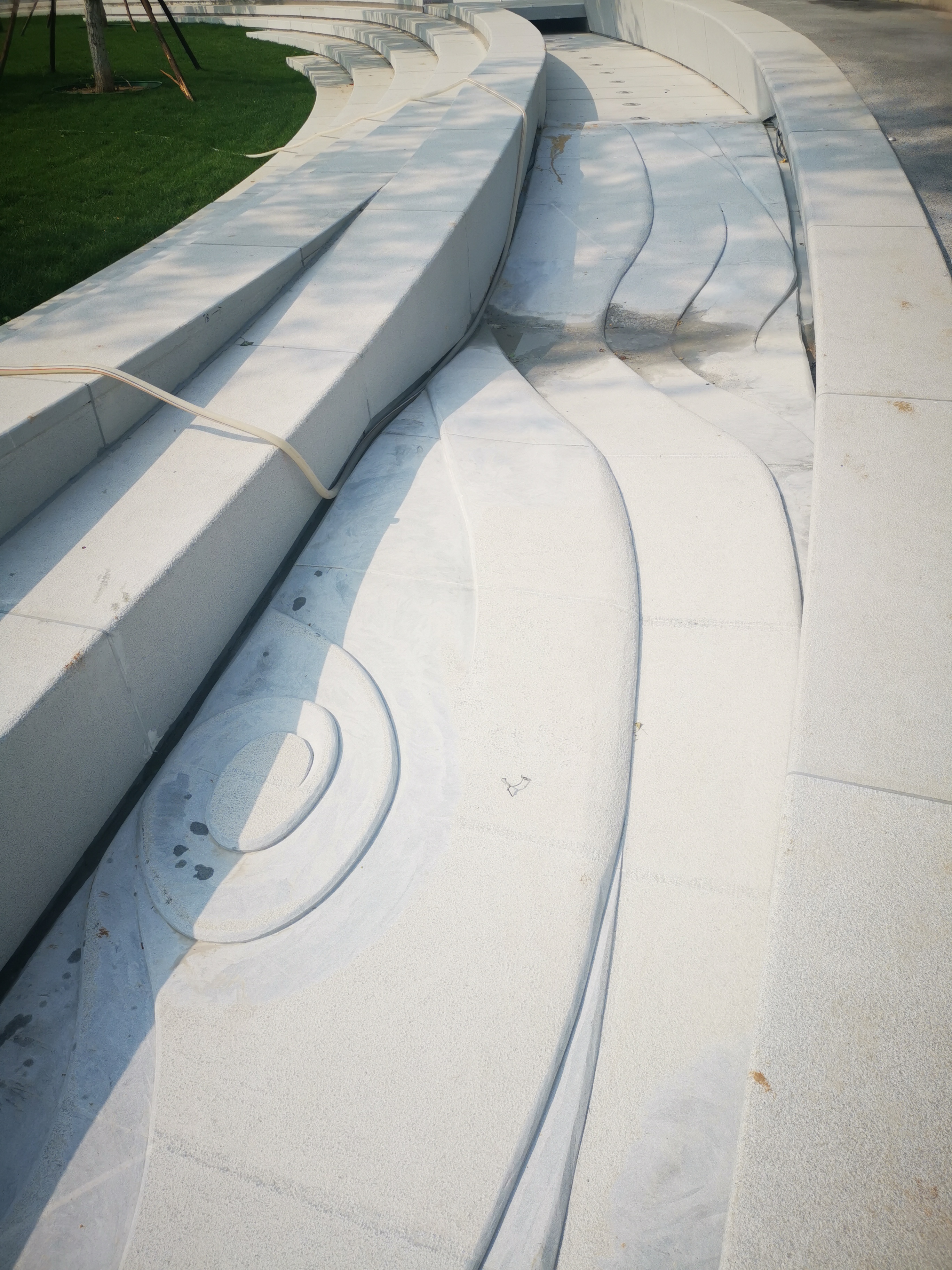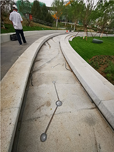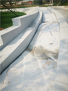作为主题作品《北斗七星石》的辅助性作品。结合园林设计的环形落水水道,雕刻水纹造型和星宿图案的组合,暗喻整个广场的科幻主题。